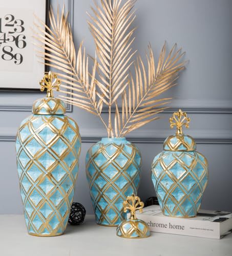 - ديكور متعدد الاستخدامات: مجموعة من ثلاث فازات مزخرفة بارتفاعات مختلفة تخلق عرضًا لافتًا للنظر مثالي للرفوف أو الأرفف أو قطع الطاولة المركزية.