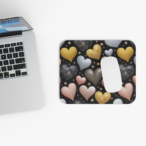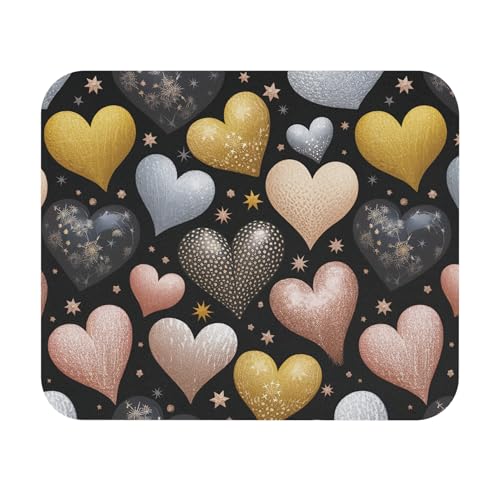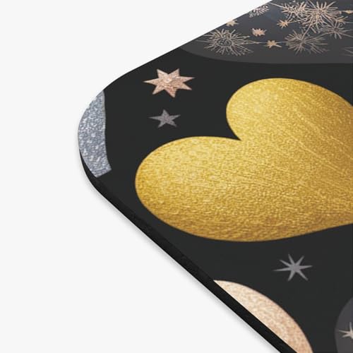 Generic - قلوب لامعة انيقة - ذهبي وفضي ووردي على اسود - تصميم فني - سجادة مكتب ناعمة ومريحة للالعاب والعمل - قاعدة ماوس متينة مضادة للانزلاق - 45