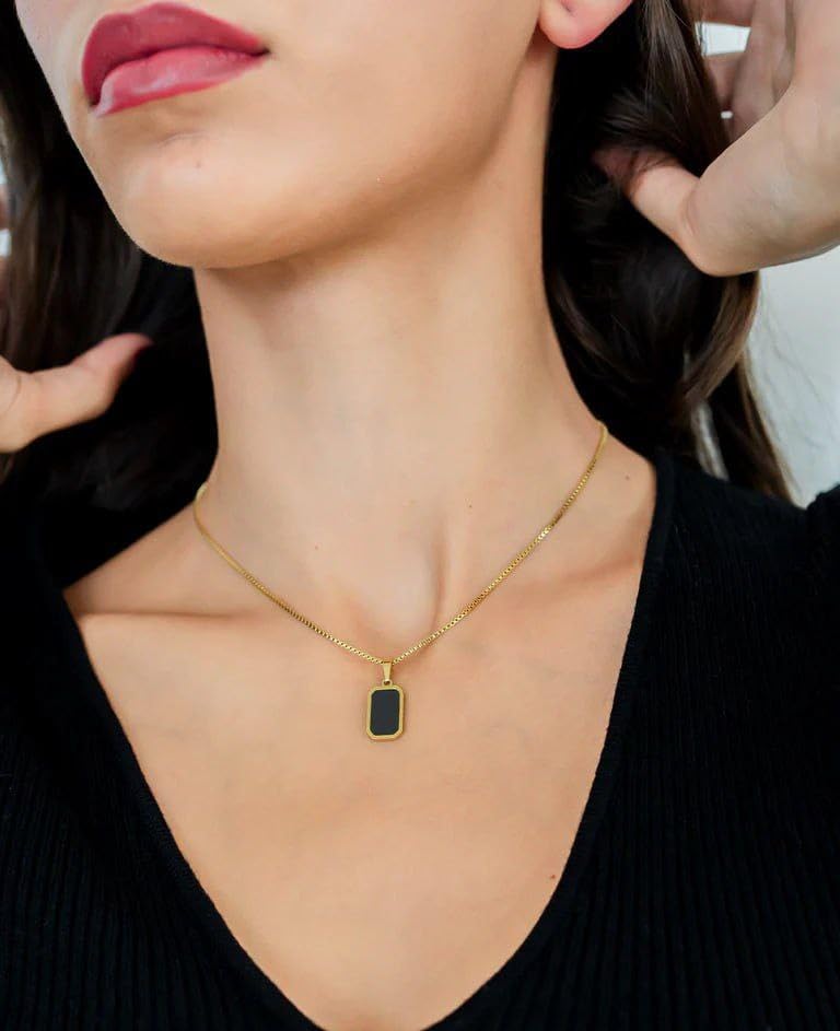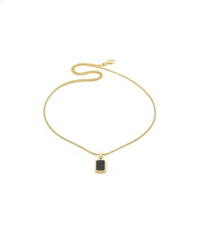 Generic - سلسلة ذهبية انيقة مع قلادة مستطيلة سوداء، تصميم كلاسيكي بسيط، مجوهرات عصرية