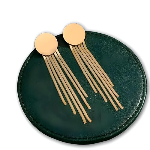 Generic - اقراط ذهبية انيقة - اقراط متدلية طويلة مصنوعة من الستانلس ستيل المطلي بالذهب عيار 18 قيراط مع شراشيب متدلية، مثالية للنساء والفتيات المراهقات العصريات