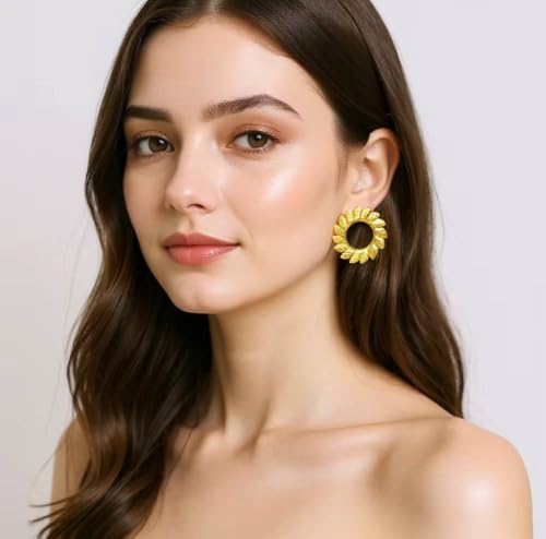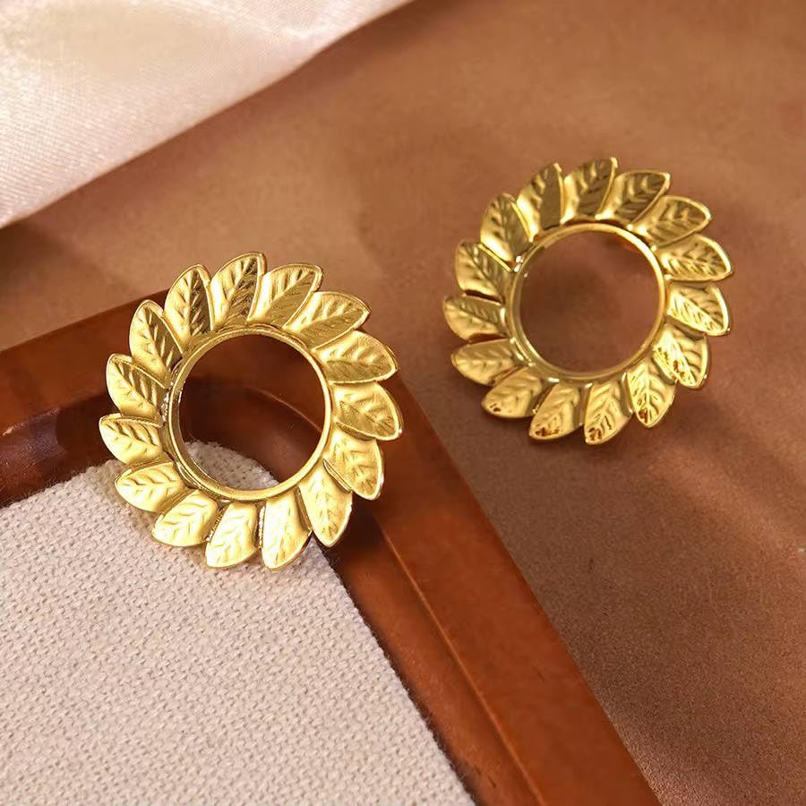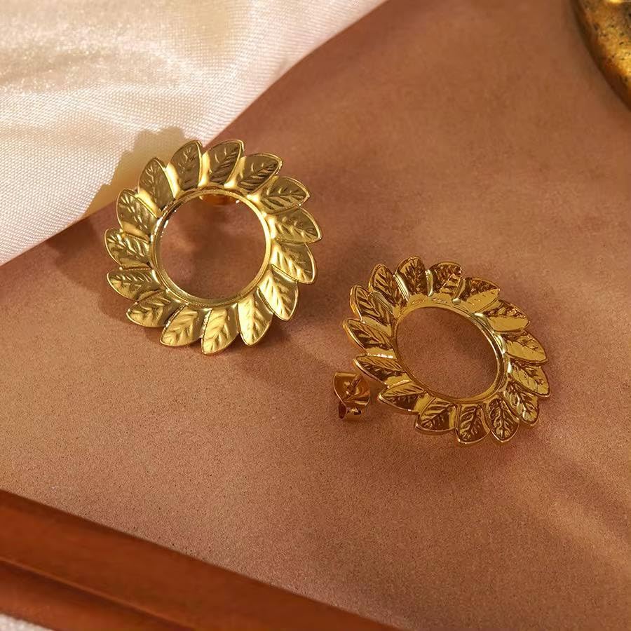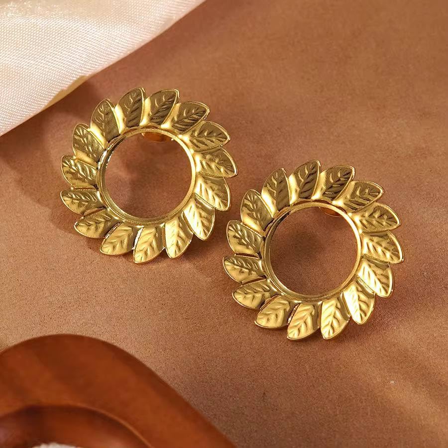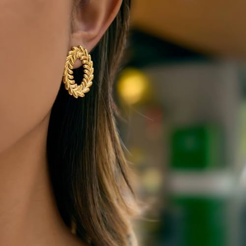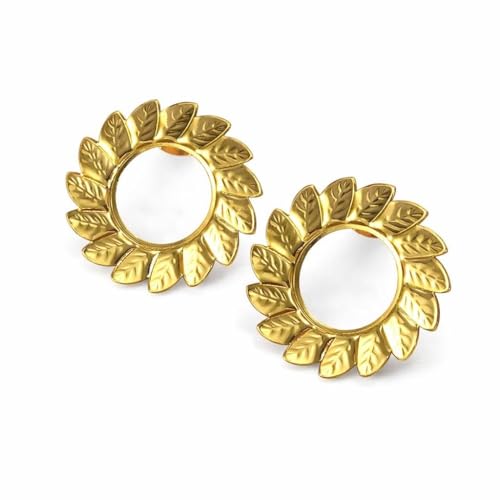 Generic - اقراط دائرية انيقة على شكل ورقة شجر ذهبية للنساء - مرصعة خفيفة الوزن بتصميم اوراق شجر عتيقة
