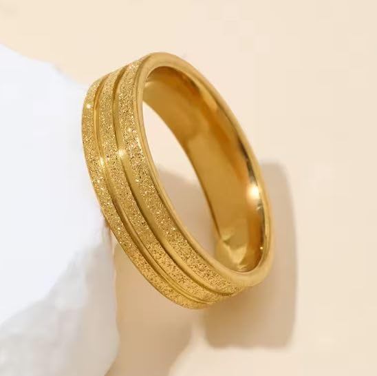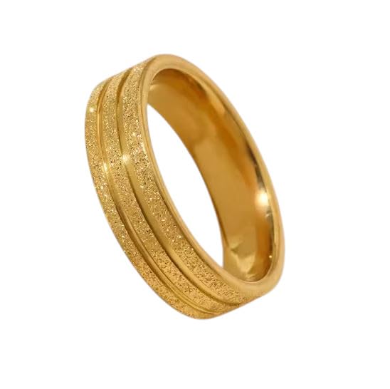 Generic - خاتم أنيق مطلي بالذهب من الفولاذ المقاوم للصدأ مع خطوط منسوجة، لمسة نهائية مصقولة غير لامعة، نمط خاتم الزفاف، مجوهرات عصرية للجنسين