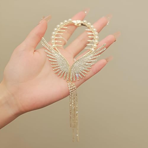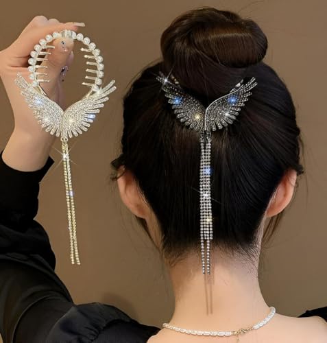 - يتميز دبوس الشعر الأنيق هذا على شكل ذيل حصان بأجنحة ملاك معقدة وتصميم شراشيب أنيق، مما يجعله إكسسوارًا مثاليًا للنساء والفتيات من جميع الأعمار. مظهره الفاخر المزين بلمسات تشبه الألماس، يرفع من أي تصفيفة شعر، سواء كان مظهرًا كاجوال أو تحديثًا أنيقًا للمناسبات الخاصة.
