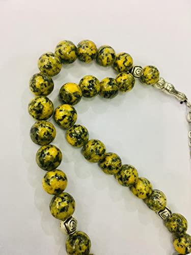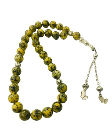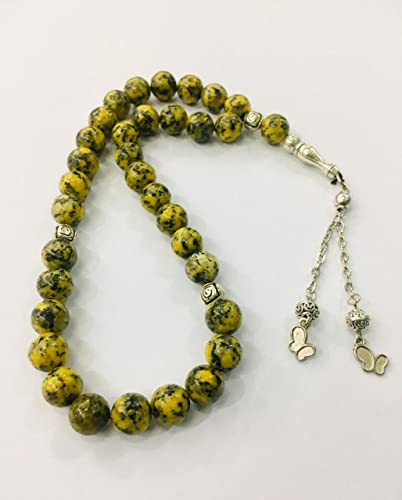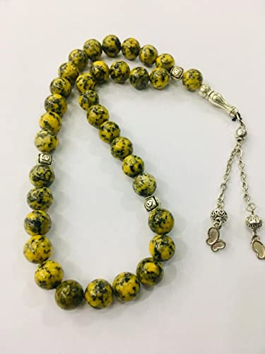 Generic - سبحة انيقة مصنوعة يدويا من اليشب الاصفر الطبيعي مكونة 33 خرزة للرجال