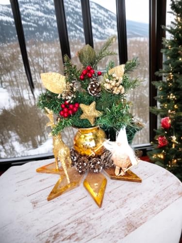 Generic - قطعة مركزية انيقة للعطلات مع قاعدة نجمة ذهبية، ترتيب الصنوبر الاصطناعي 35 سم مع التوت الاحمر، مخاريط الصنوبر، عرض ديكور الكريسماس