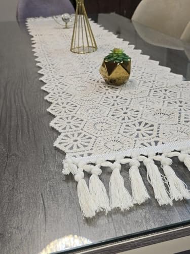 - 【تصميم أنيق】يتميز مفرش الطاولة المزخرف هذا بتصميم بسيط ومتطور يعزز جمال أي طاولة أو سطح، مما يخلق جوًا أنيقًا وجذابًا يمتزج بسلاسة مع التصميمات الداخلية الحديثة أو الكلاسيكية أو البوهيمية، مما يضيف طبقة رقيقة من السحر والجاذبية الفنية إلى ديكور منزلك.