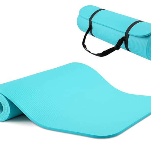 Elegant Home - بساط يوجا من مطاط حراري مرن بسمك 6 ملم مانع للانزلاق، بساط يوجا وتمارين صديق للبيئة للياقة البدنية، والبيلاتس، والتمارين المنزلية وفي الجيم من اليجانت هوم - لون تركواز - 1.73 م × 61 سم