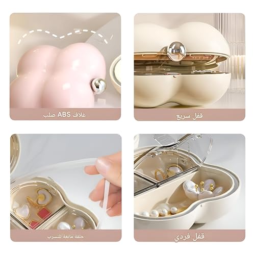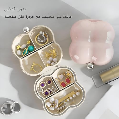 - صغيرة وقابلة للحمل: الحجم الصغير يجعل من السهل وضعها في أمتعتك أو حقيبة يدك، مما يضمن بقاء مجوهراتك آمنة ومأمونة أثناء السفر.