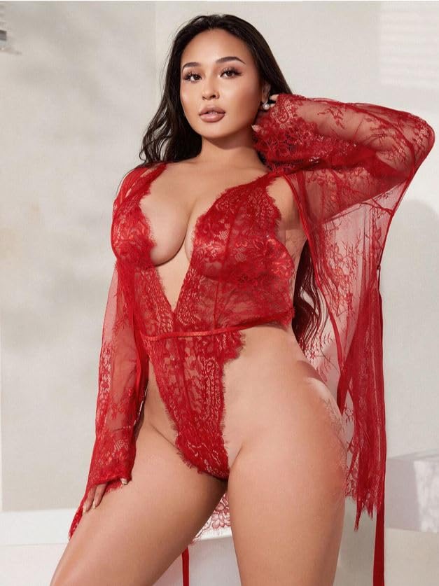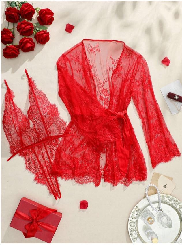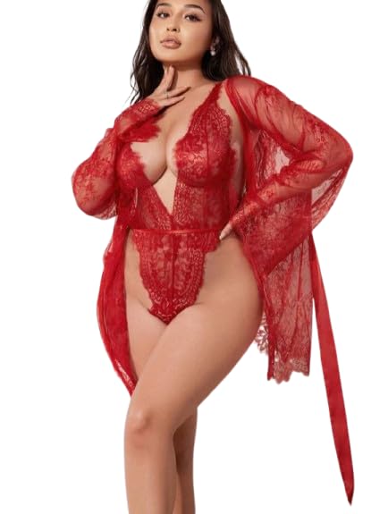 Generic - سالوبيت بكباسين أنيق بتصميم أكمام طويلة مصنوع من الدانتيل الشفاف ونقشة زهور، لانجري مثير قصير للنساء يستخدم كملابس للنوم أو روب استحمام مناسب لوصيفة العروس
