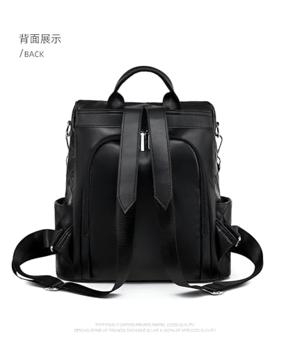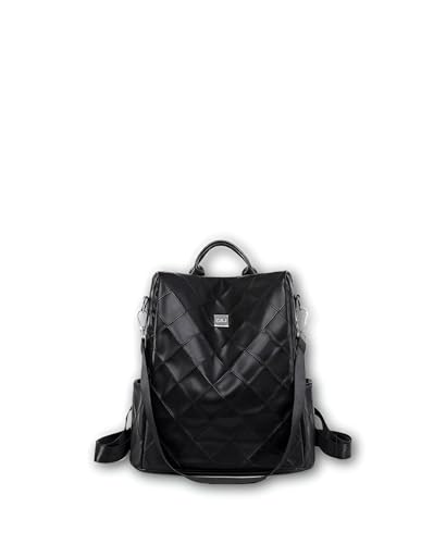 Generic - شنطة يد جلدية انيقة - شنطة ظهر سوداء للنساء بلمسة نهائية لامعة، قابلة للتحويل الى شنطة كتف، لمسات معدنية ذهبية، جيوب داخلية واسعة لتنظيم الاساسيات اليومية.