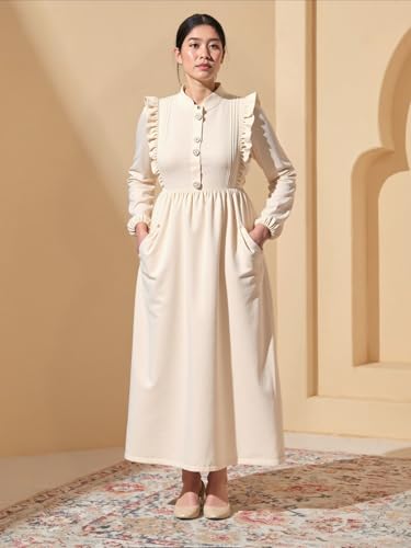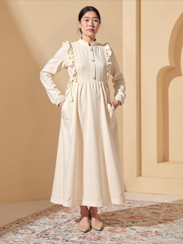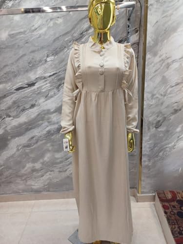 Generic - دريس كتان أنيق بحزامين جانبيين وزراير على الصدر – كم طويل بأستيك – متوفر بمقاسي L (60–85 كجم) وXXL (85–120 كجم)