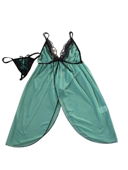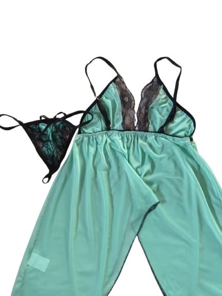 Generic - طقم لانجيري انيق بحواف من الدانتيل، اخضر مينت واسود، قطعتين