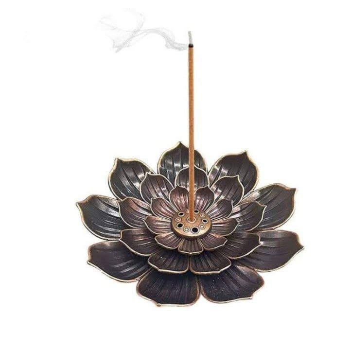 Generic - حامل بخور لوتس انيق بلمسة نهائية من النحاس - يحمل البخور المخروطي بشكل آمن، مثالي للمنزل والمكتب ومساحة التأمل (قطعة واحدة)