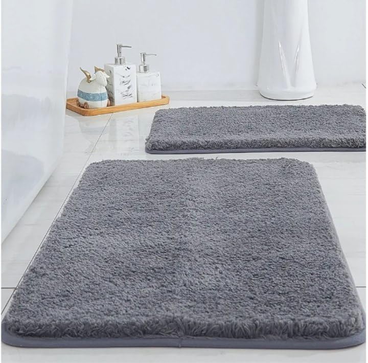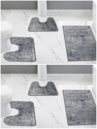 Generic - طقم سجاد حمام رخامي أنيق، سجاد حمام من الفرو القطيفة مع ظهر مضاد للانزلاق، ديكور حمام للمنزل، 3 قطع (رمادي (مجموعتان))