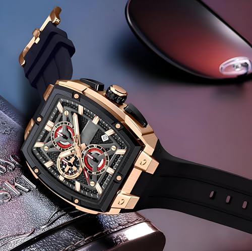 Generic - ساعة كرونوغراف انيقة للرجال - هيكل تونيو انيق مع مينا رياضي متعدد الوظائف، سوار سيليكون مريح لارتداء متعدد الاستخدامات