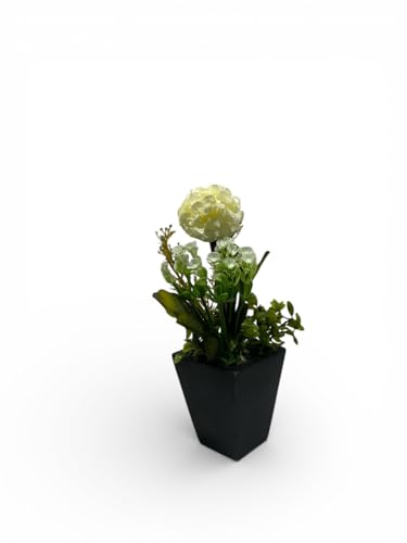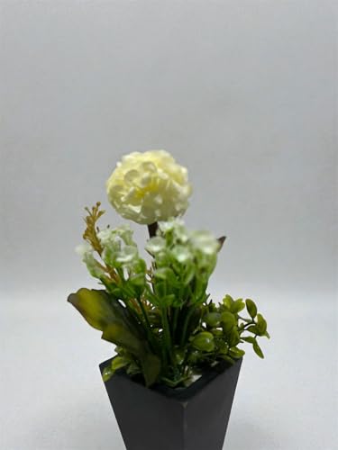 - تصميم أنيق وواقعي: فازة صغيرة مزودة بوردة صناعية صفراء فاتحة مع مجموعة متنوعة من النباتات الخضراء الصناعية بمظهر طبيعي وجذاب