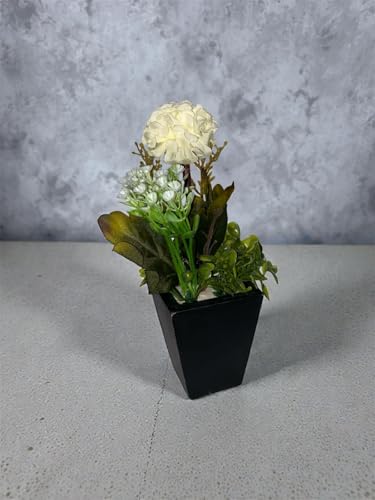 Generic - فازة صغيرة أنيقة مع وردة صناعية ونباتات ديكور، تصميم واقعي، مناسبة للمكاتب والطاولات والأرفف
