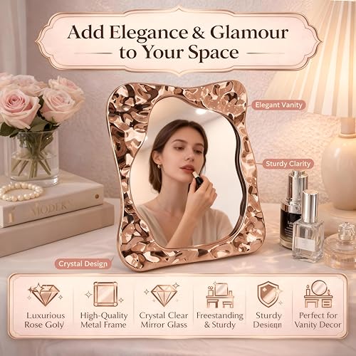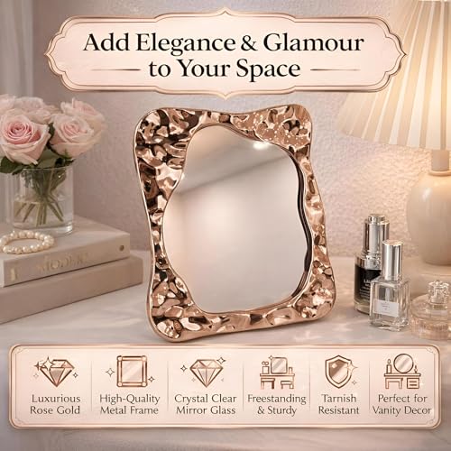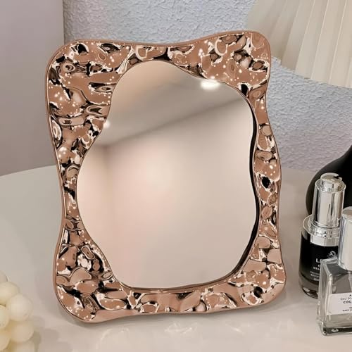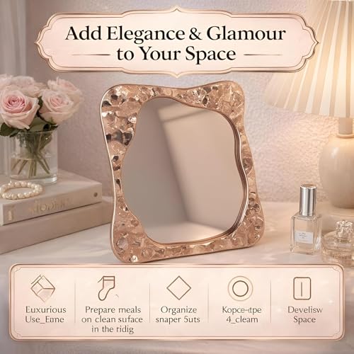 Generic - مراة انيقة - مرآة ذات شكل منحني بقاعدة ثابتة؛ مقاس 22 سم × 18 سم، توفر انعكاسًا واضحًا وخاليًا من التشويش لوضع مكياج مثالي على أي طاولة زينة. (موديل 2)