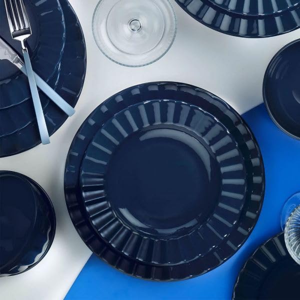 - مجموعة فاخرة: طقم أطباق عشاء بورسلين مكون من 24 قطعة باللون الأزرق الداكن الراقي، مثالي لتناول الطعام الرسمي والاستخدام اليومي