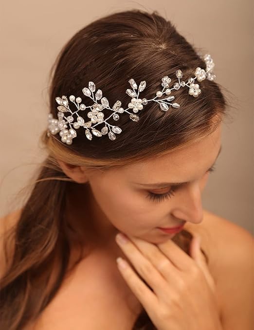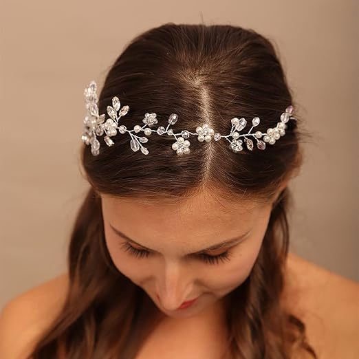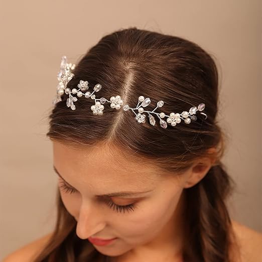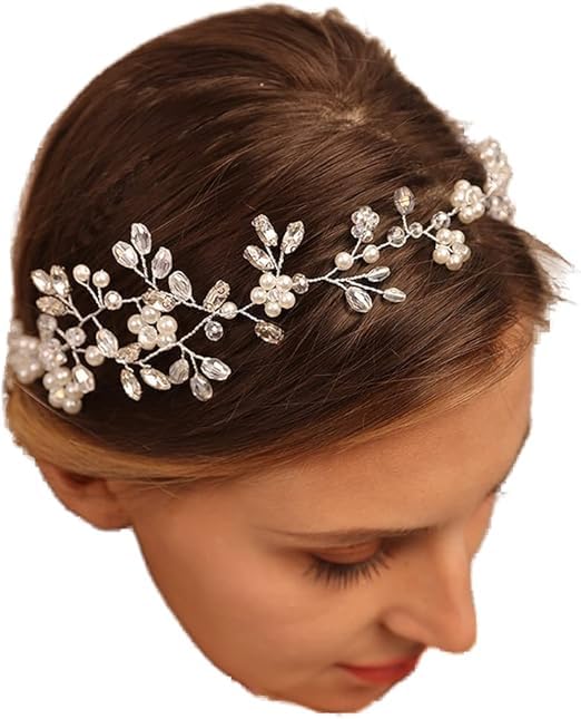 Generic - كرمة شعر انيقة من اللؤلؤ والكريستال - شريط راس فضي مصنوع يدويا للعروس او وصيفة العروس او الحفلات الراقصة - اكسسوار شعر كلاسيكي للزفاف للنساء