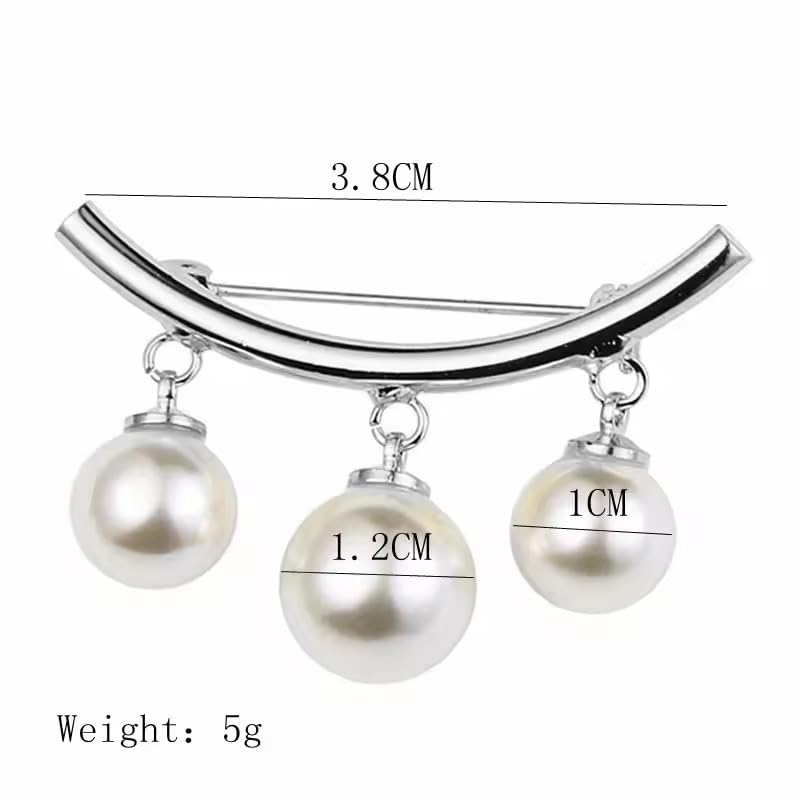 Generic - دبوس بروش انيق من اللؤلؤ مع 3 لؤلؤ معلق، قضيب منحني 3.8 سم، فضي، 5 غرام