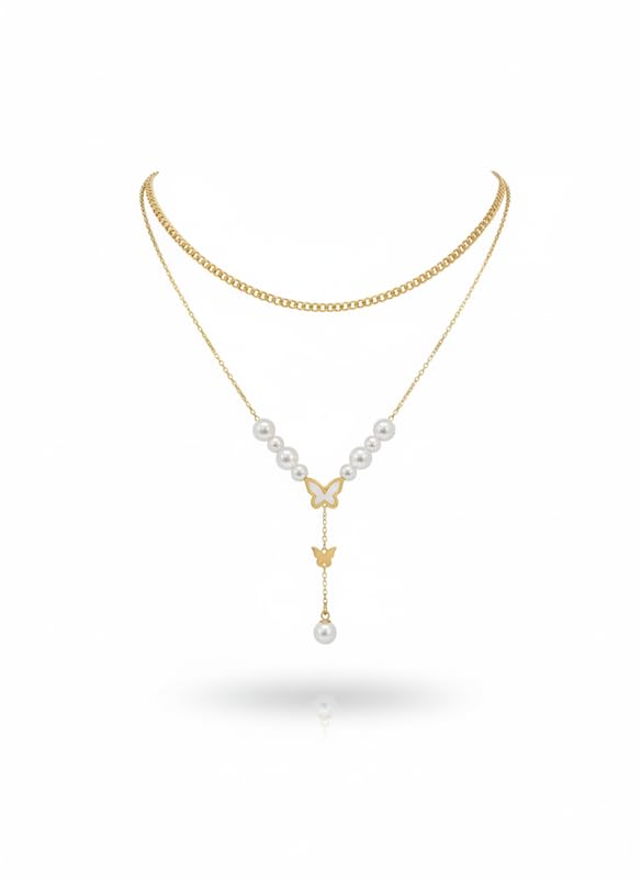 Generic - قلادة لؤلؤة أنيقة مع فراشات