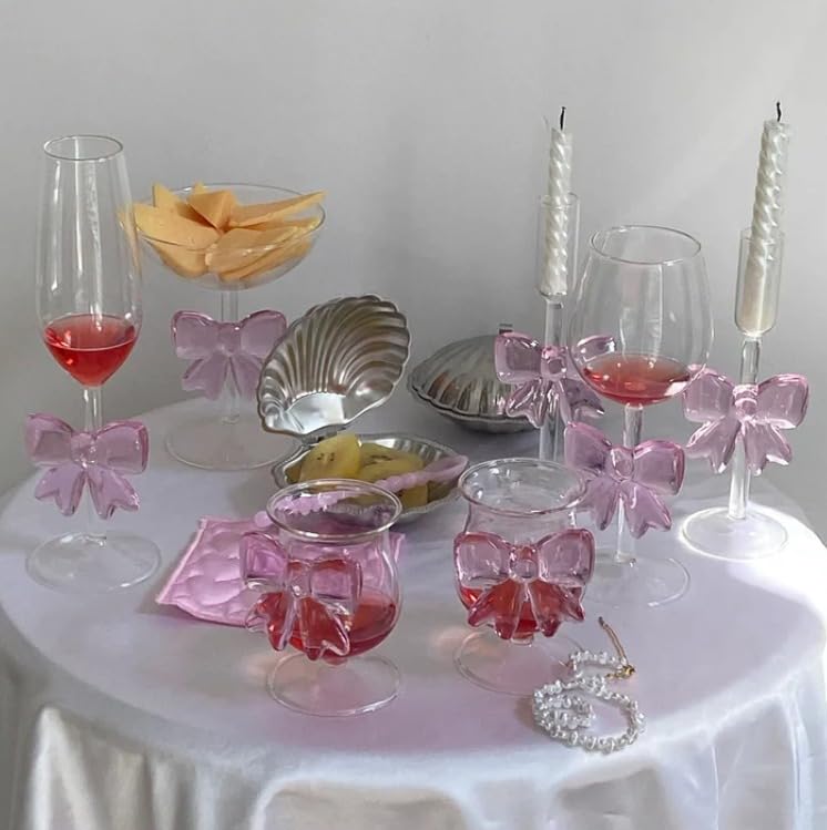 Generic - كوب أنيق على شكل فيونكة وردية - كوب تقديم عصير ومشروبات جذاب بسعة عالية