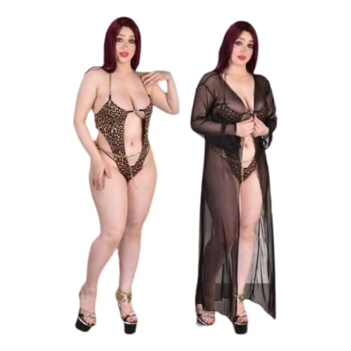 Generic - طقم لانجيري شيفون انيق مقاس كبير بطبعة جلد الفهد مع روب شفاف، خامة زبدة مستوردة، يناسب حتى 65 كجم - طقم شيفون انيق، بطباعة جلد الفهد شفاف، مصنوع من الزبدة المستوردة، يناسب حتى 65 كجم