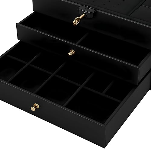 - مصمم بأدراج واسعة متعددة، يوفر هذا المنظم تخزينًا آمنًا وخاليًا من الفوضى للخواتم والأقراط والأساور والقلائد، مما يجعل من السهل تحديد موقع كل قطعة والوصول إليها دون تشابك أو تلف.