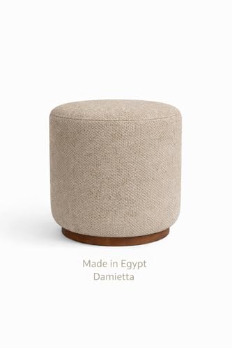 Generic - بف دائري أنيق– مصنوع من خشب الزان والأبلاكاش مع إسفنج عالي الكثافة وقماش فاخر – منتج مُعمر و يتحمل أوزان عالية – يستخدم ككرسي تسريحة أو مقعد إضافي في غرفة المعيشة (بيج)