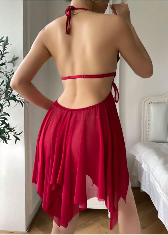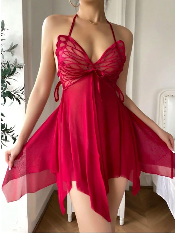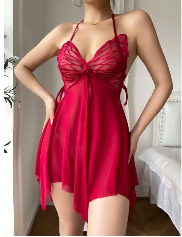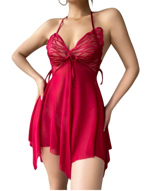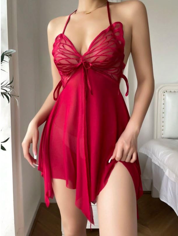Generic - ملابس نوم بيبي دول انيقة من الساتان، ملابس نوم مثيرة، تفاصيل حواف من الدانتيل، اشرطة قابلة للتعديل
