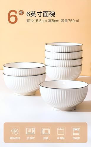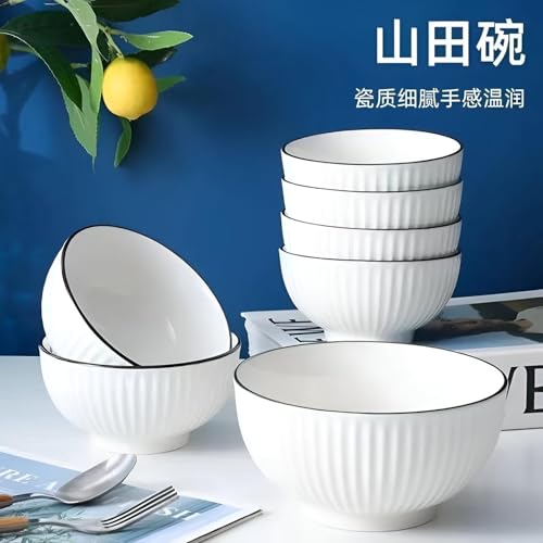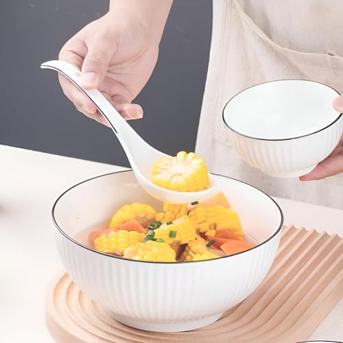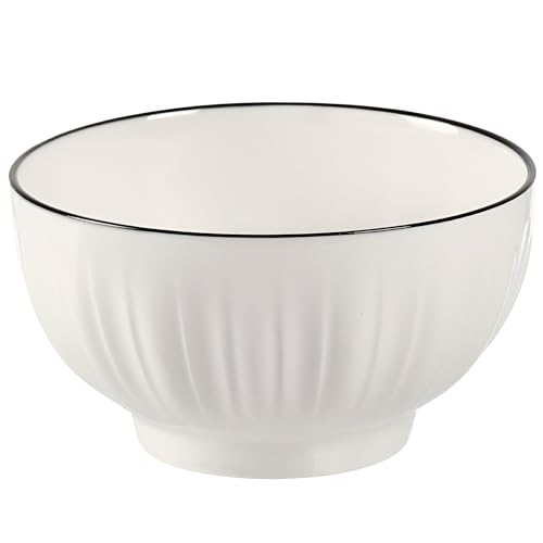 Generic - بولة تقديم أنيقة من بورسلين أبيض بحواف سوداء أنيقة مناسبة للسلطات والشوربات والوجبات الخفيفة، طبق تقديم غويط بتصميم مميز لإضفاء لمسة من الرقي.