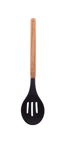 Generic - ملعقة سباتولا سيليكون أنيقة بمقبض خشبي طراز BT26-210-100393-1، لون أسود