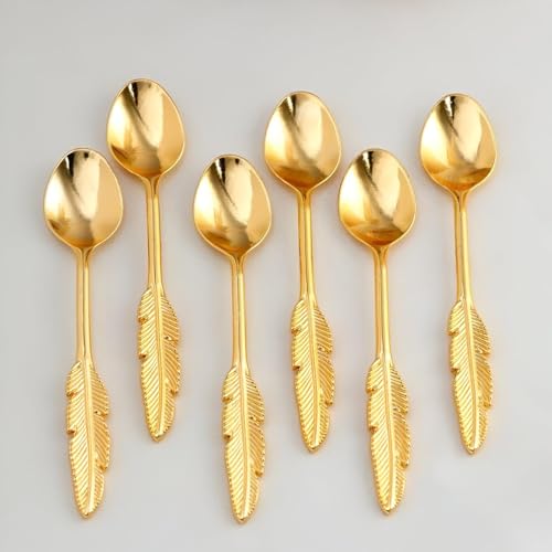 Generic - طقم ملاعق انيقة - طقم من 6 قطع من الستانلس ستيل مع مقبض ريش للحلويات والحلوى (1 باكة)