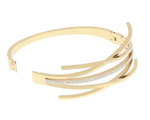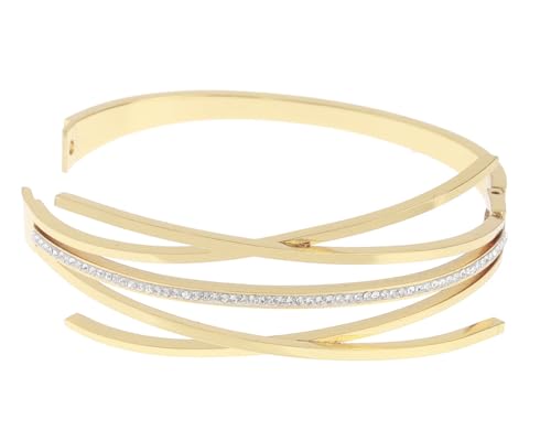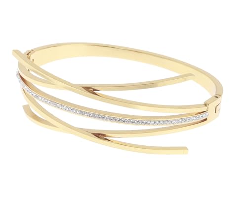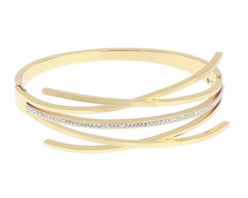 Generic - سوار ستانلس ستيل انيق به فصوص لامعة مناسب للاستخدام اليومي والحفلات مقاس موحد للنساء ، اسود H-S-ANS-16