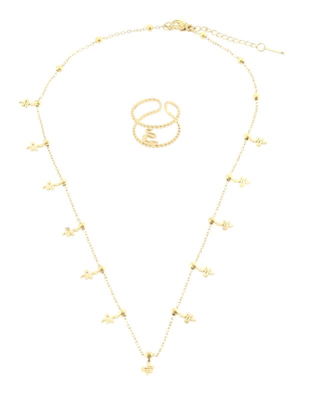Generic - طقم سلسلة ستانلس ستيل انيقة مع خاتم من نفس الشكل مناسب للاستخدام اليومي والحفلات مقاس قابل للتعديل للنساء ، ذهبي H-S-NKL-80