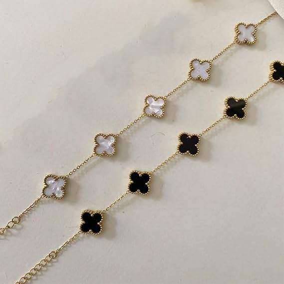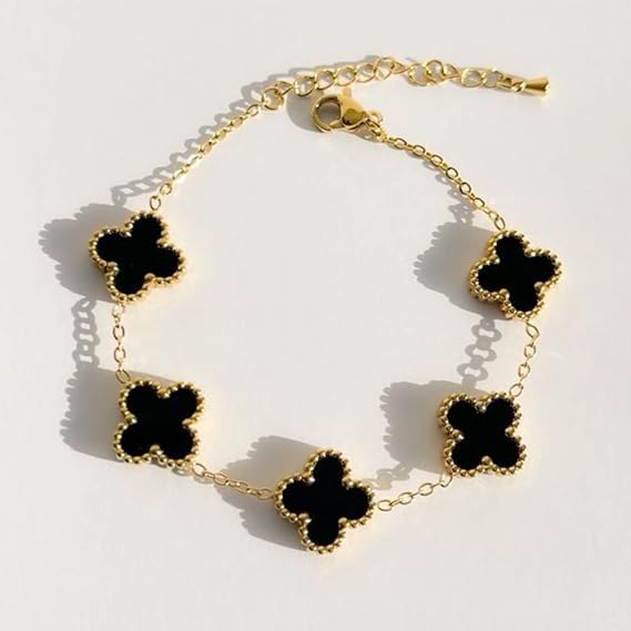 Generic - سوار سلسلة أنيق من الفولاذ المقاوم للصدأ بتصميم خمس زهور، مجوهرات عصرية للنساء