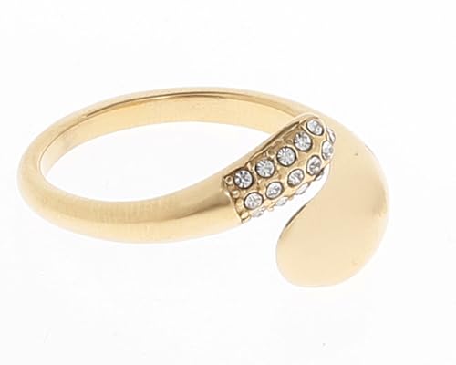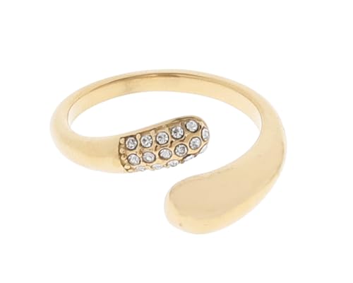 Generic - خاتم أنيق استانلس ستيل به فصوص لامعة مقاس موحد للنساء ، ذهبي SH-R-11