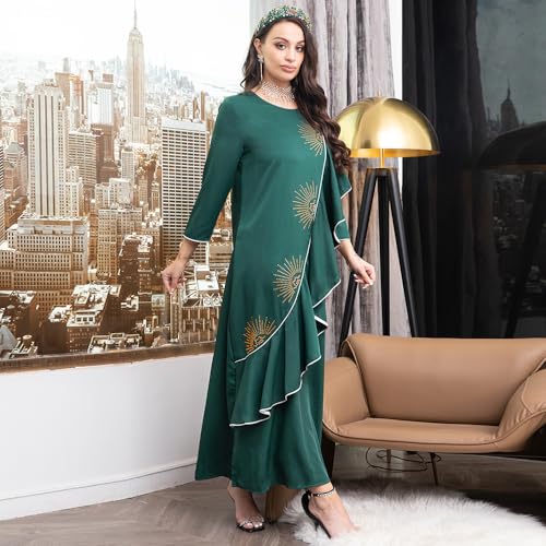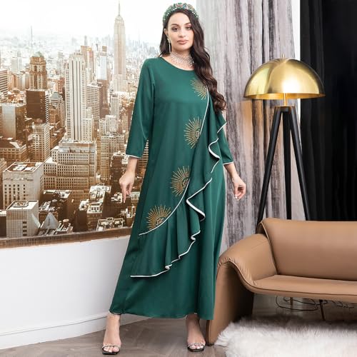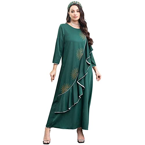 FRIDAYIN - Elegant style Round neck Color contrast Gilding Ruffle Irregular Regular sleeve Kaftan