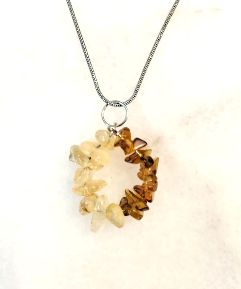 Generic - قلادة انيقة مصنوعة يدويا من الخرز الطبيعي (السترين والكوارتز الدخاني)، للكبار من الجنسين