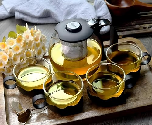 Generic - غلاية شاي أنيق - قم بتحويل تجربة تناول المشروبات الخاصة بك بإبريق شاي زجاجي مصمم بشكل جميل و4 أكواب، يجمع بين الأناقة والعملية للاستخدام اليومي في أي مطبخ