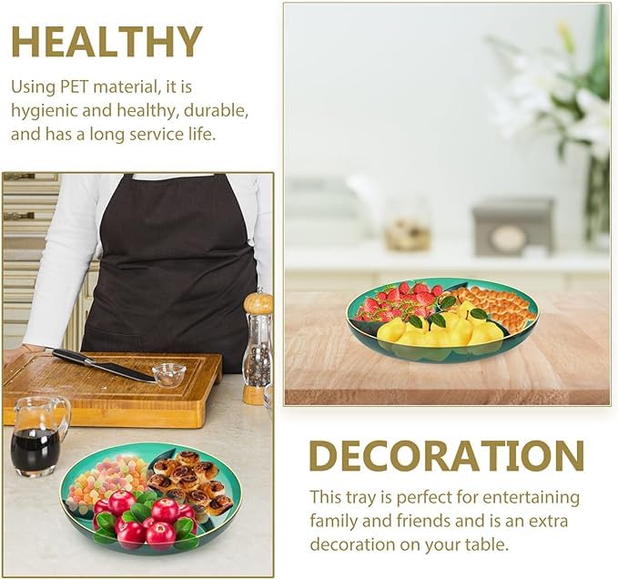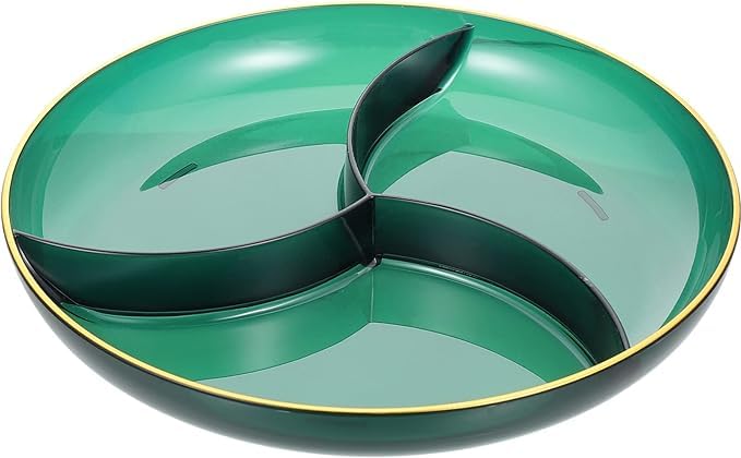 Generic - طبق تاسلي اكريليك سميك وأنيق بـ3 أقسام للوجبات الخفيفة والفواكه والطعام والحلوى والمقبلات وتخزين الطعام في الحفلات - (لون أخضر)