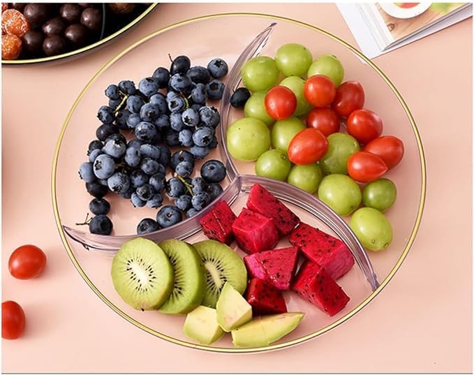 - 🧁طبق تقديم مقبلات بـ3 أقسام للحلويات والوجبات الخفيفة والسلطة والفاكهة المجففة والمكسرات والكب كيك لعيد الشكر وحفلات الزفاف.