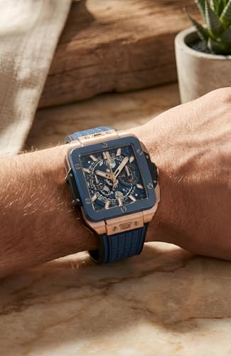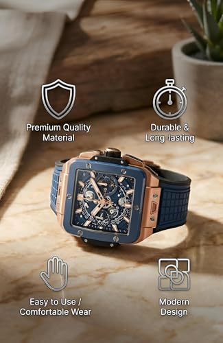 Generic - ساعة انيقة - ساعة فاخرة فاخرة للرجال على شكل مربع تتميز بمينا هيكل عظمي مذهل وسوار مطاطي متين ولمسات متعددة الالوان وخاصية عرض التاريخ للارتداء اليومي.