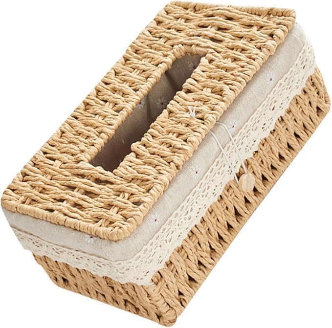 - علبة التخزين: يضيف تصميم الدانتيل القماشي الإبداعي بعض الأناقة والسحر إلى علبة المناديل هذا، علبة مناديل رقيقة.