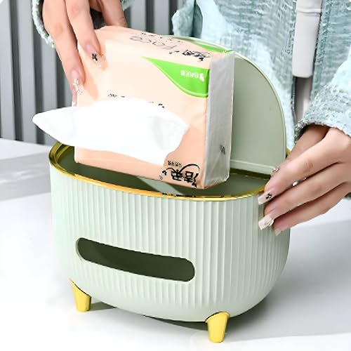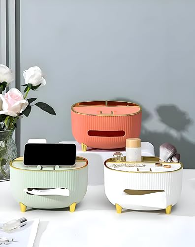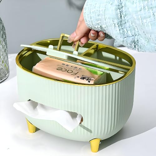 Generic - صندوق مناديل انيق - متعدد الوظائف مع مساحات تخزين مقسمة لتنظيم الاوراق واجهزة التحكم عن بعد والهواتف والنظارات والاكسسوارات، مثالي كحامل ديكور للمكتب والمساحات المنزلية. (لون سي)