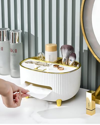 - ليس فقط للمناديل - تحتوي الأقسام الثلاثة على أجهزة التحكم عن بعد والنظارات والهواتف ومستحضرات التجميل والأدوات الصغيرة، مما يضمن بقاء ضرورياتك في متناول اليد وتبقى طاولتك خالية من الفوضى.