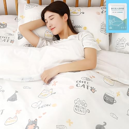 Generic - طقم ملاءة سرير بلون أبيض مُصمّمة خصيصًا للسفر مكونة من ملاءة ومخدة وبطانية للاستعمال مرة واحدة، تمنحك راحة وأناقة لا مثيل لهما أثناء التنقّل أنيقة للسفر
