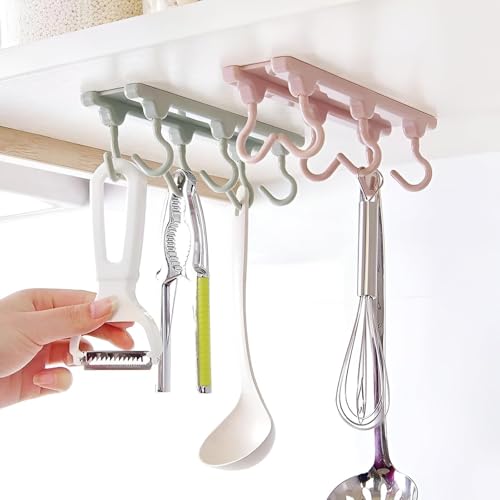 Generic - منظم حائط انيق - حامل حائط انيق وموفر للمساحة يحمل الاواني والمغارف والفرش والقفازات والادوات الصغيرة مع ستة خطافات متينة ولمسة نهائية كريمية ناعمة وهيكل بلاستيكي متين.