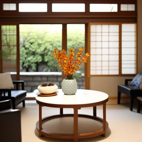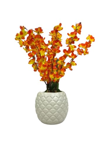 Generic - مزهرية بيضاء أنيقة مع زهور صناعية برتقالية، تصميم محفور، ارتفاع 50 سم، ديكور منزلي للمعيشة والمكاتب